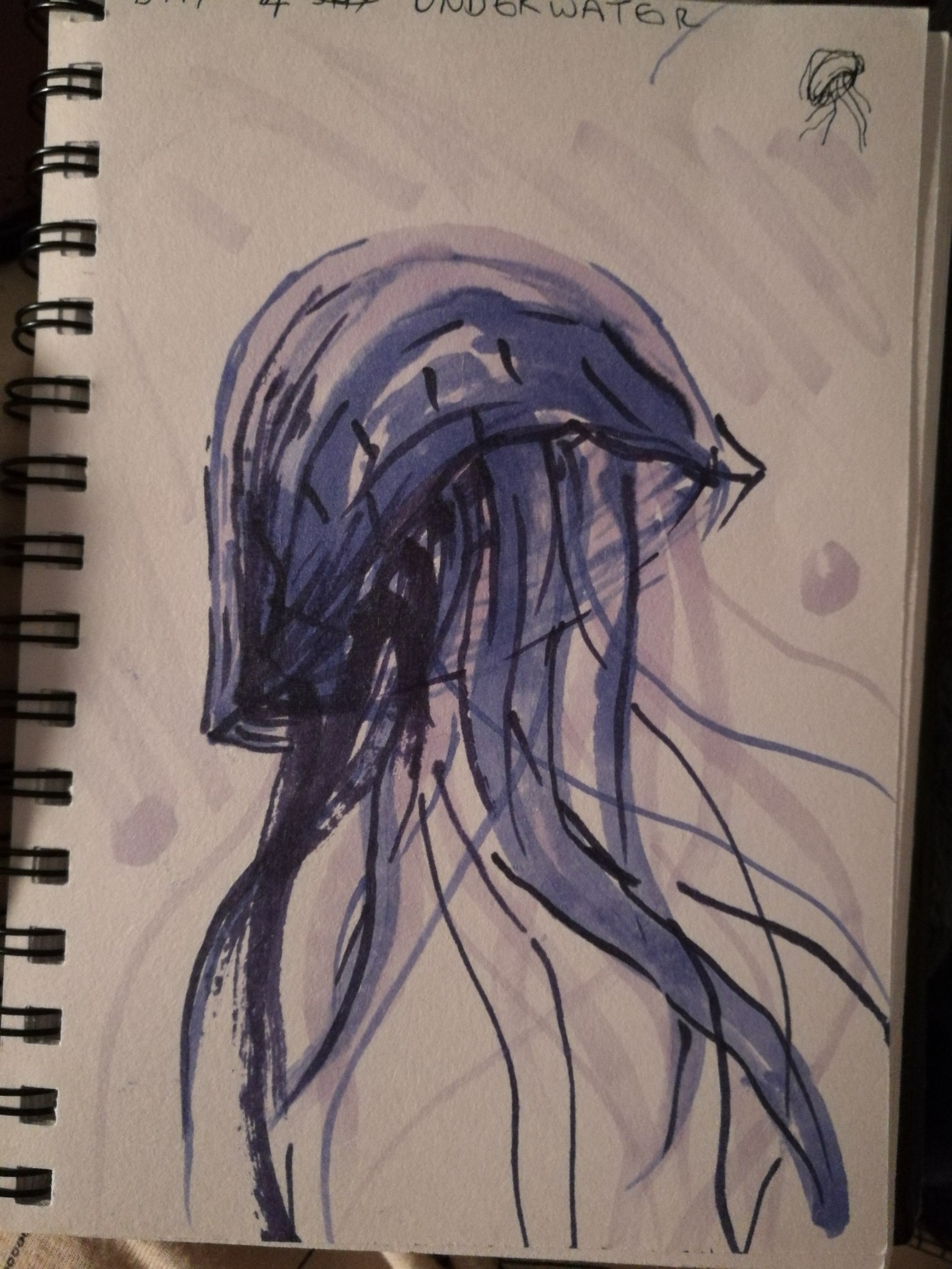 Today’s entry is a little rushed. I finished late from work and was just so tired. I decided to just use the copic markers today and avoid black altogether. The more I added the more overworked it looked so I decided that today would be a simple entry. It was nice not to have to think too much about what to do for the entry, since “underwater” fits my nature theme nicely.