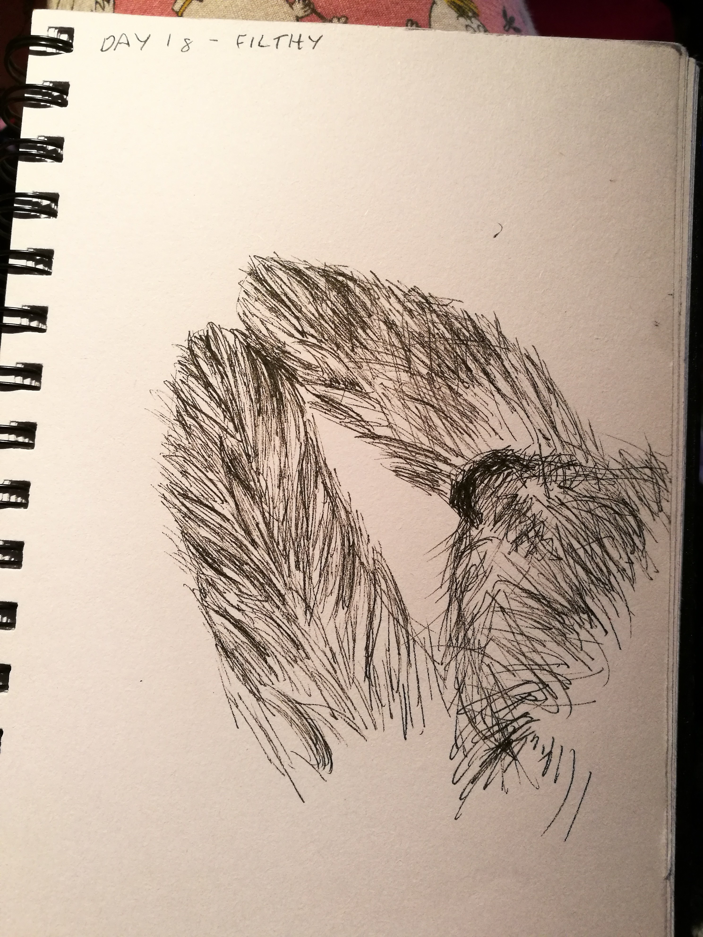 Here’s my tipsy pub entry for day 18. The inspiration? Molly’s gross digging-paws.