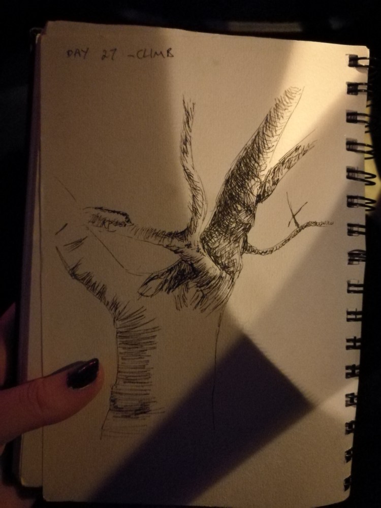When I hear “climb” I think of especially climbable trees. It’s a shame I didn’t finidh it (maybe I’ll go back to it) but at least it’s fulfilling the aim of drawing, at least a little, every day.