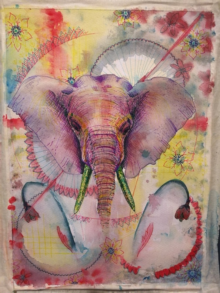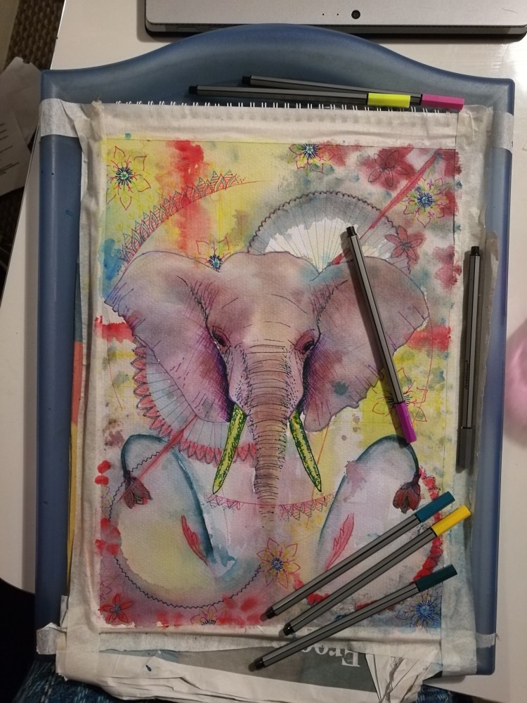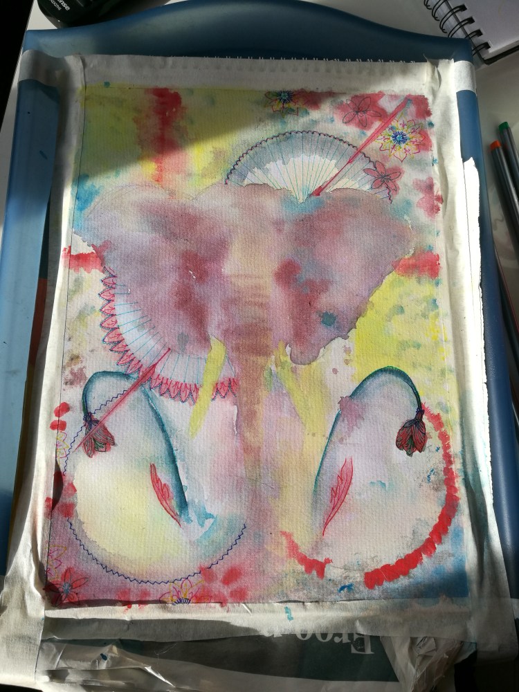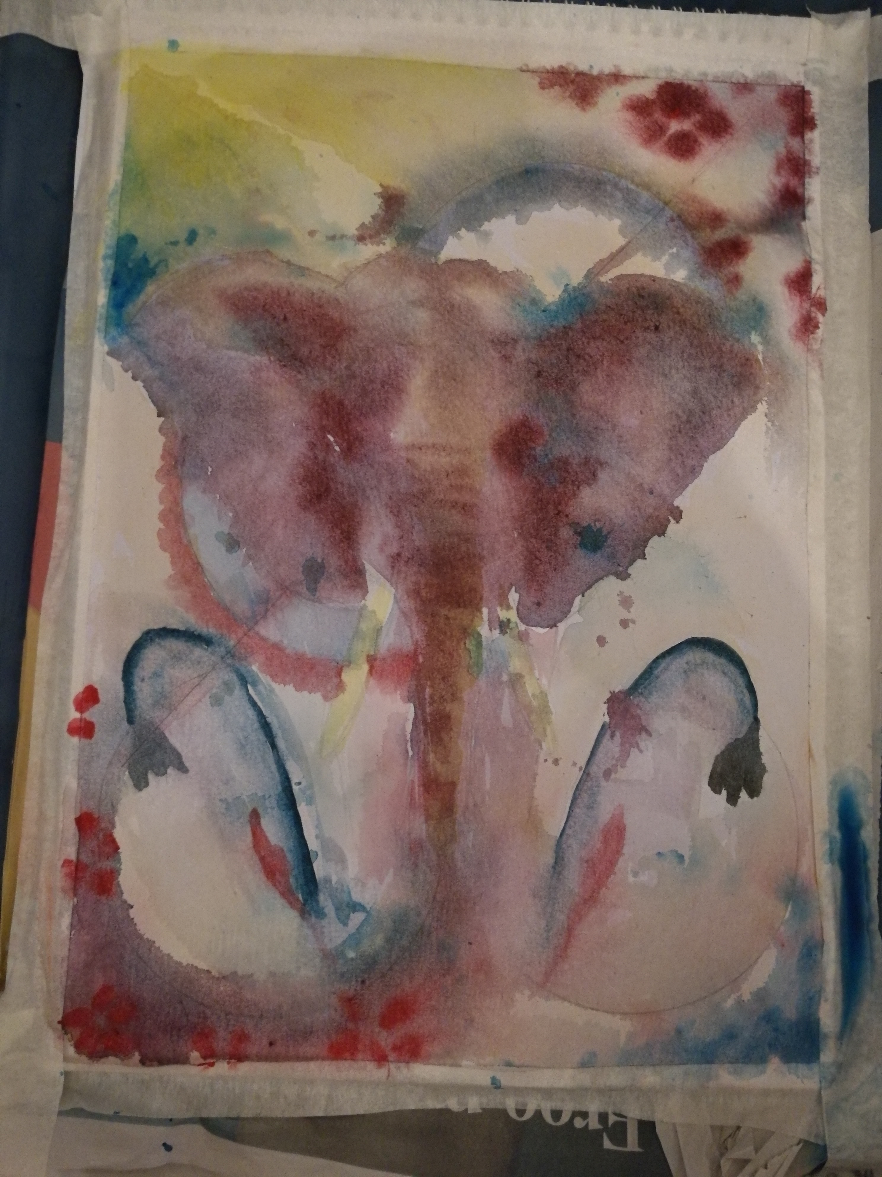 At the end of last month it was my friend’s birthday. She loves elephants and I wanted to make her something that seemed “her”ish (colourful, fun etc.) Below are some progress pictures of the piece.