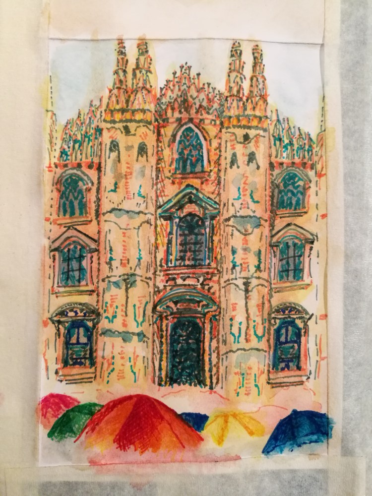 Recently at work my team and I won a trip to Milan! I feel proud of our hard work and it’s nice to be recognised for it. We’re hoping to go in June so I’ll take plenty of photos. As a thank you to the team, I made some Milan-themed thank you cards. I did it after finishing this piece, so used the same materials. Watercolour and pen are also useful for making something quite quickly so it was perfect for a last minute project.