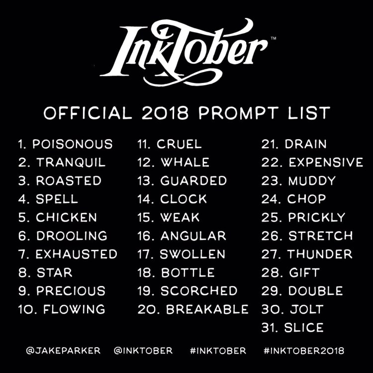 HOWEVER, it’s Inktober! Let’s focus on that. This year I’m working with the official prompt list: