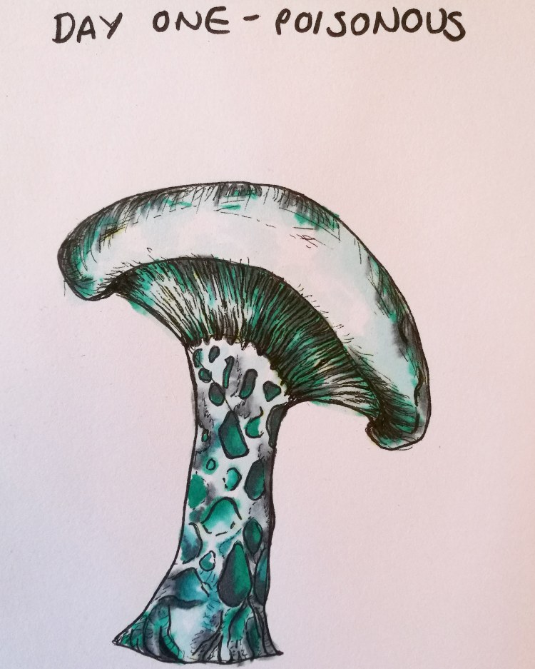 1. Hey Julia! Wanted to draw a poisonous ‘shroom too, like yours, then changed my mind a drew a whole bunh of them in a footed bowl! You did a great job! Happy Inktober