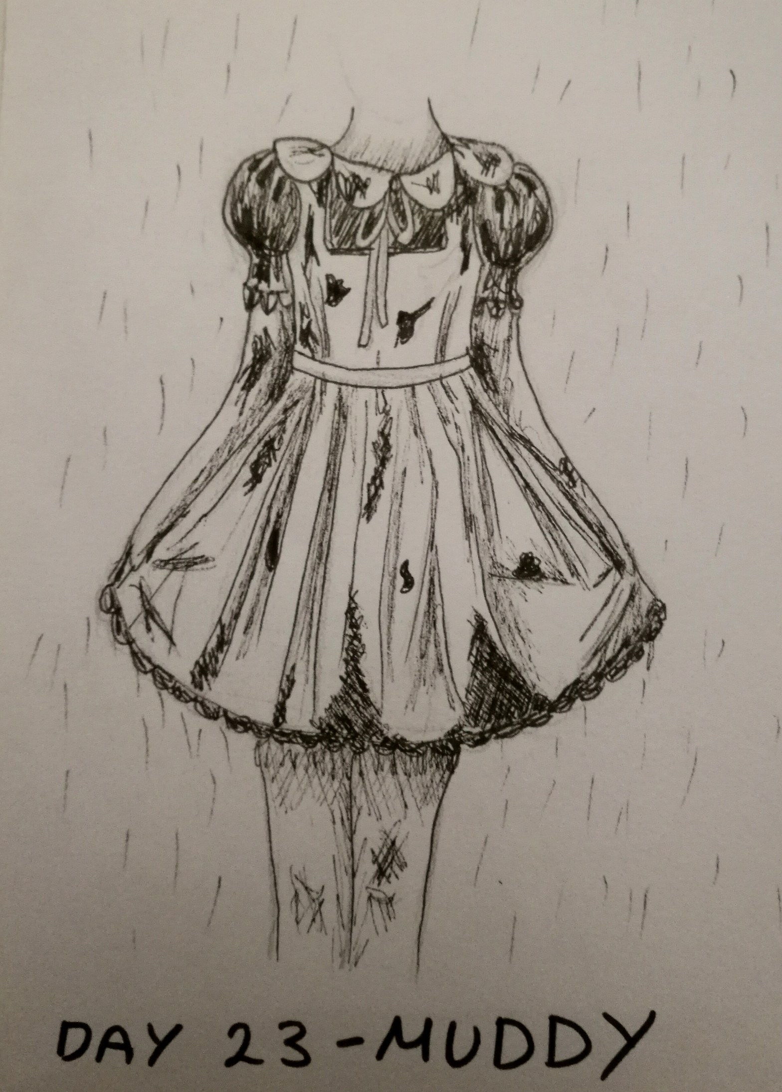 I was going to go with a muddy lolita-style dress, but it quickly turned into a horror scene. Just in time for Halloween eh?
