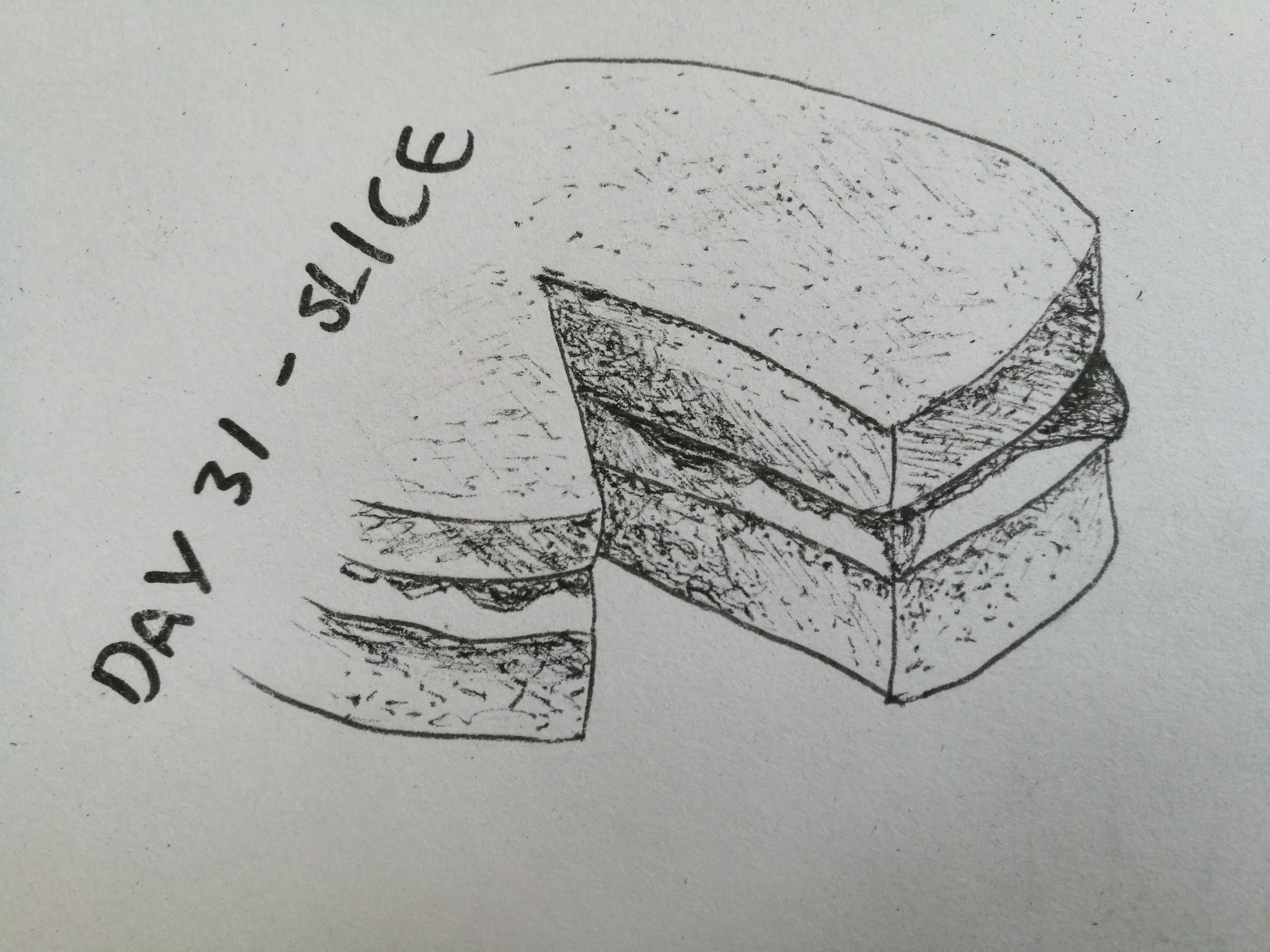 I just realise I copied on my sketch book wrongly the prompt, and wrote Dice instead of Slice!!! now I must draw a slice of sthg….