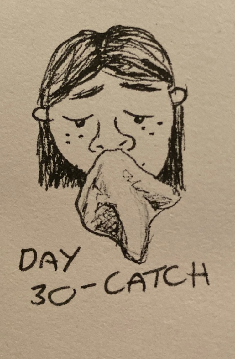 I’m feeling sorry for myself today because I’m off ill. I actually haven’t caught a cold, despite the prompt word and doodle, but here’s hoping I feel better tomorrow.