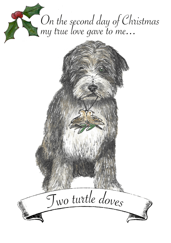 Last year I made a series of Bearded Collie cards but didn’t share them all. This year, on the first 12 days of Christmas I’m going to finally share each design!