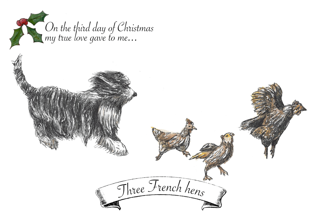 Last year I made a series of Bearded Collie cards but didn’t share them all. This year, on the first 12 days of Christmas I’m going to finally share each design!