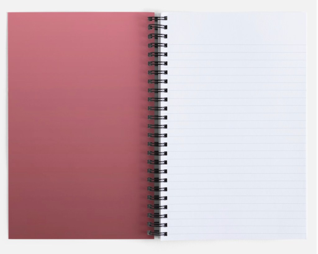 The notebook measures 139 x 216 mm in size, has spiral binding and has 80 pages of lined paper in total.