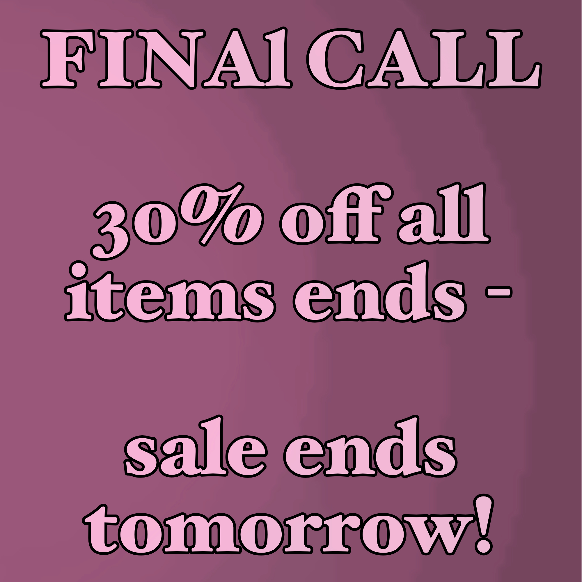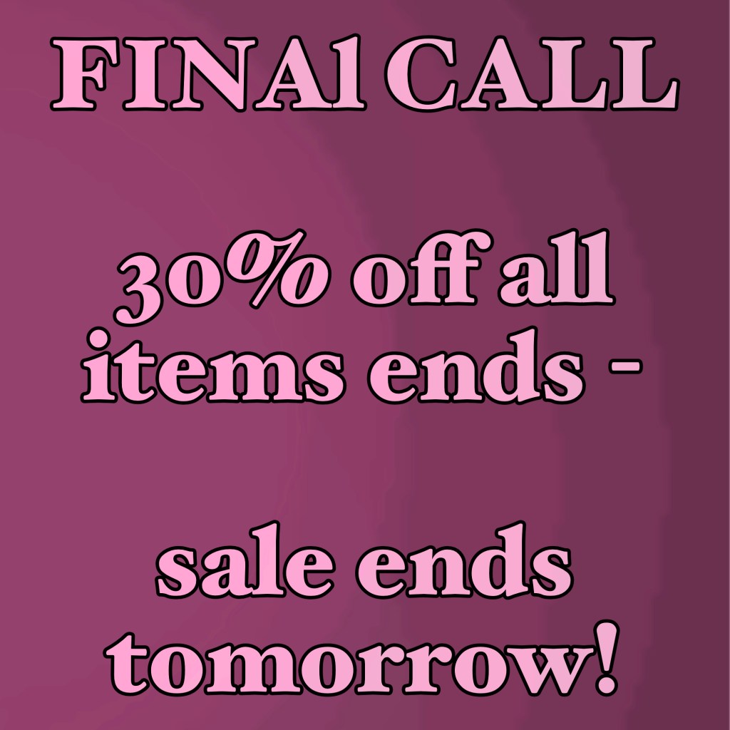 Here’s your last reminder that the 30% off sale ends tomorrow.