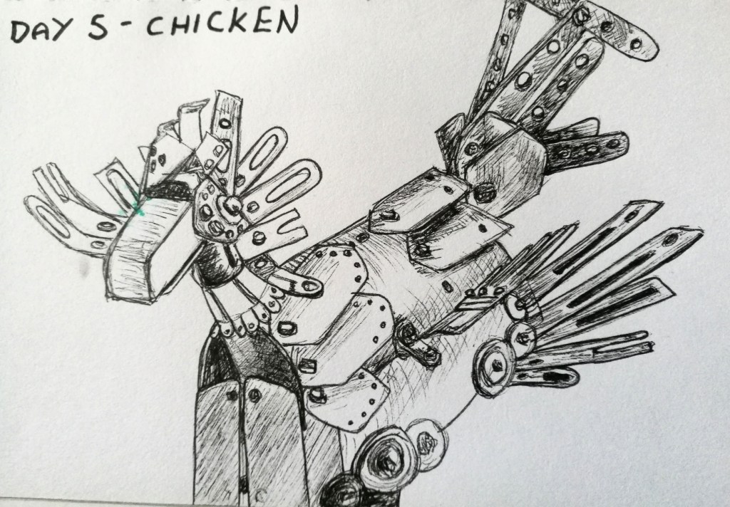 To this day, “chicken” is still one of the strangest prompt words from Inktober.