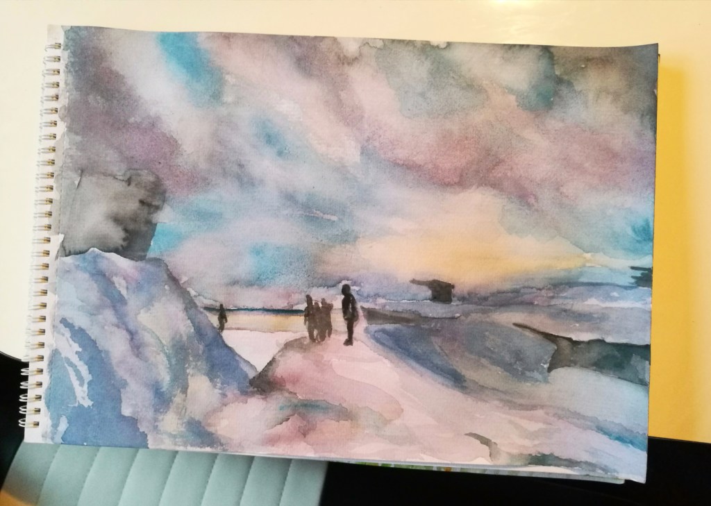 A few years back, I went to Norway and absolutely loved it. When I got home, I tried watercolours and I THINK it might have been my first attempt (second image). In 2017 I wrote “they’re so difficult! How on Earth do you not make a colourful blob?” Truer words.