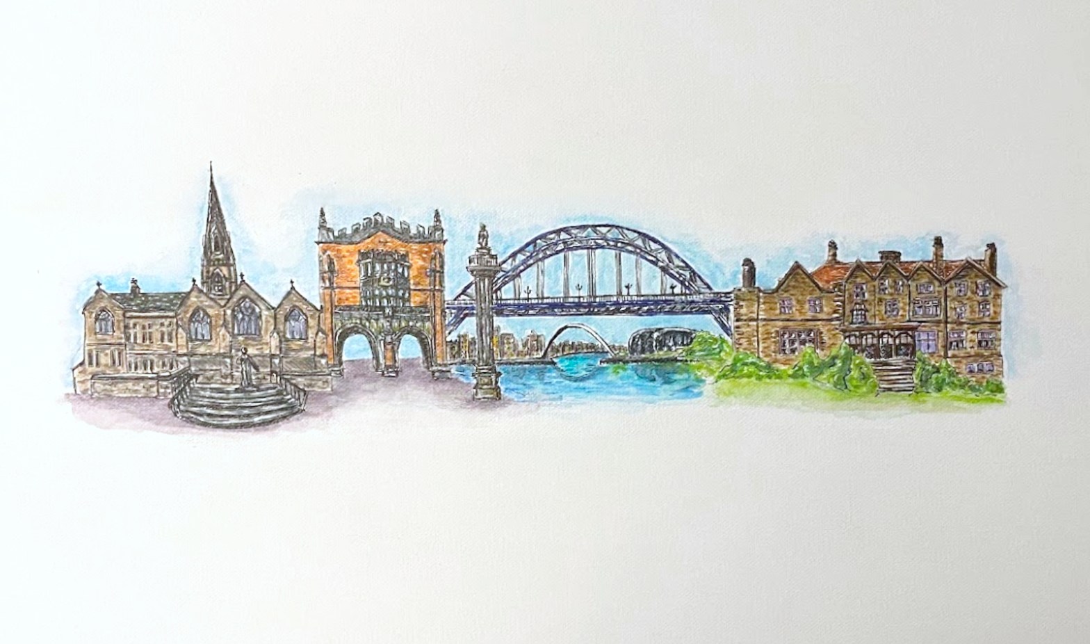 I had the BEST time creating this bespoke wedding guestbook canvas for a lovely couple. The bride was even so kind as to let me post about it before their wedding day next month. The theme of this one was different places in Newcastle. I love when there’s a mixture of old and new architecture, some water, and some variation in the horizon, so this set of locations for me was just perfect.