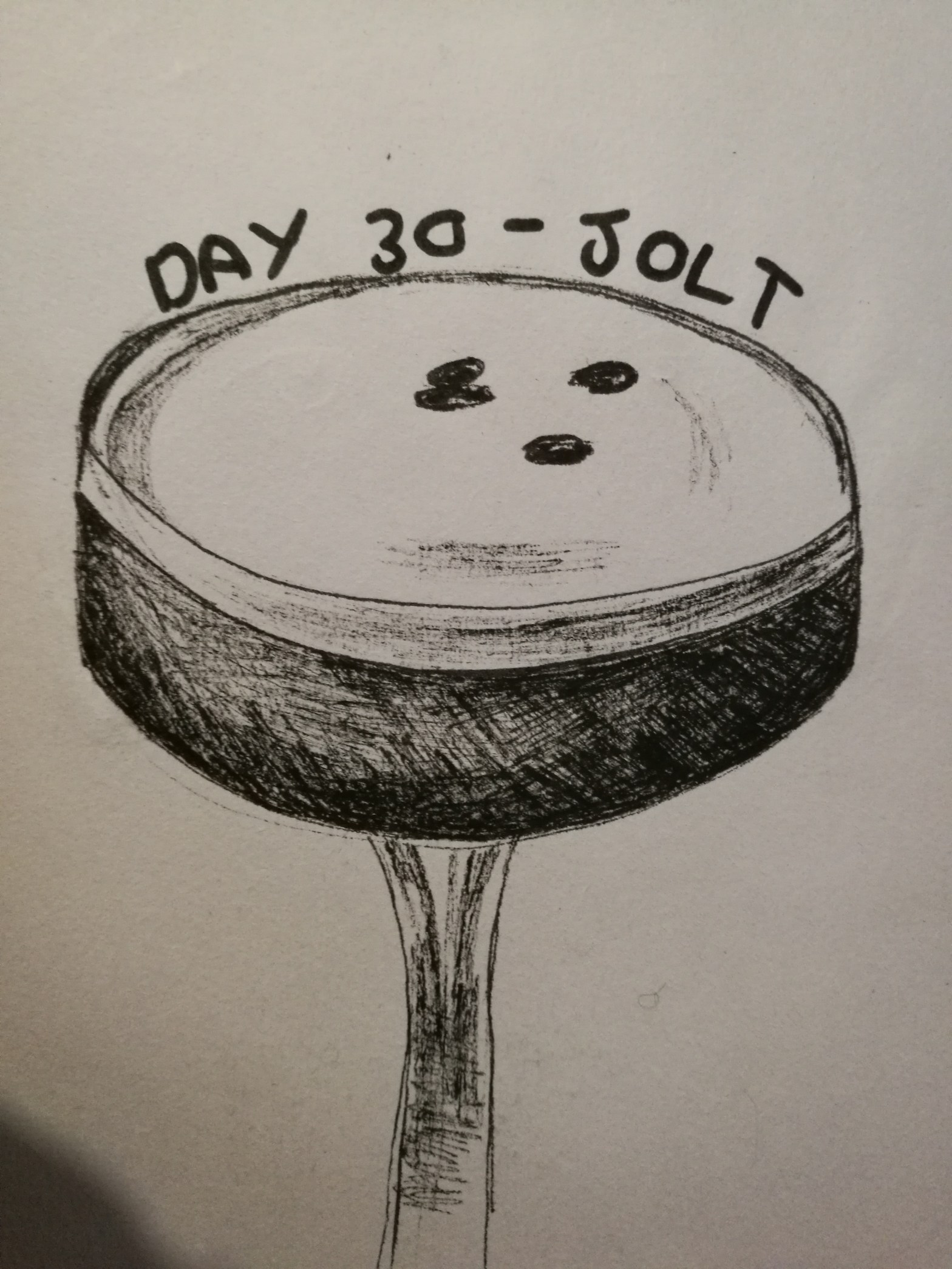 Super rushed, pen running out but hey ho, day 30 done! When I saw “jolt” I thought coffee, but then thought of one better, espresso martini!