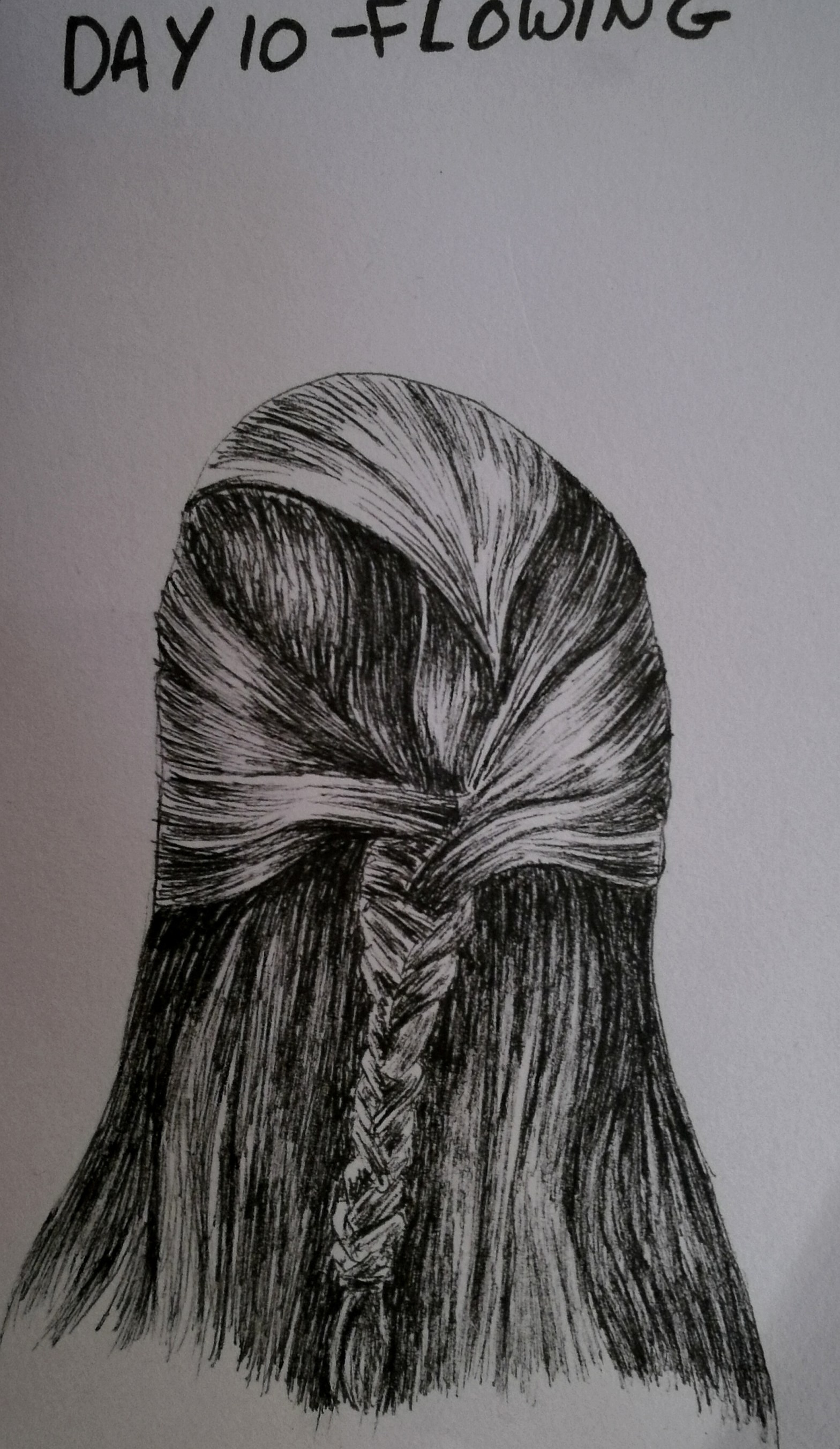 When I read “flowing” I think of long flowing hair. And then I think of this photo I finished a couple of years ago so I thought I’d have another go. Today was just a quick sketch so this and the original are hardly comparable but it’s fun to do nonetheless.